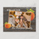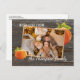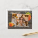 Cartão de Natal único, clássico, de moda, bonito e decorativo. Recortar com amor do texto e da sala para personalizar ou personalizar com uma foto e nomes (ou nome da família) de sua escolha. Com abóboras de laranja clássicas bonitinhas em uma caserna rusticária de cinza de fundo com aparência meteorológica, a fazenda inspirou planadores de madeira de casca-de-rosa. E um poema de saudação de estação personalizável na parte de trás do cartão.