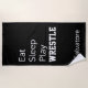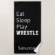 Faça um respingo na piscina ou a praia com esta toalha de praia personalizada da luta. Coma, durma, jogue, WRESTLE. Você pode personalizar mudando a cor do fundo demasiado.