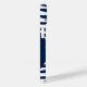 A capas de iphone personalizada de cascata-matrimônio com uma faixa branca azul moderna, monograma, tem um padrão moderno de risca azul e branca e uma forma de diamante. Personalize-o com a sua inicial.