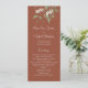 Mande seus convidados através do dia especial com este cartão elegante do programa de casamento, projetado para sua cerimônia ou serviço da igreja. Apresentando sotaques florais de cor aquosa macia, tons de terracota quentes e verde delicado, esta peça de papelaria de casamento delineia lindamente a ordem do serviço. O refinado roteiro de caligrafia acrescenta um toque de sofisticação, fazer perfeito para qualquer celebração romântica ou inspirada na natureza. Um na moda e um detalhe significativo para completar o seu conjunto do dia do casamento.