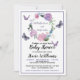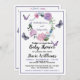 Este é um convite para chás de fraldas bonito que contém uma coroa floral e borboletas roxas. Você pode personalizar o convite para alterar o nome, a data e o local do chá. Altere a fonte, o tamanho, a cor e o estilo de acordo com suas preferências. A parte traseira foi deixada vazio para qualquer informação adicional que você queira adicionar.