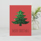 Linda árvore de Natal de tendências personalizável com faíscas verdes. Você pode personalizar a cor vermelha do convite e o texto. Foto de faíscas não é uma falha real.
