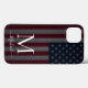 Bandeira Americana Patriótica no design de malha metálica abstrato para proteger seu iPhone. Esta design apresenta a bandeira dos Estados Unidos da América (EUA) sobre fundo de malha metálica com a bandeira esmaecida para mostrar a textura do metal. Você pode personalizar este design com seu nome e nome iniciais.