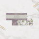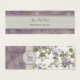 Uma imagem digital com um padrão floral vintage de papel de parede de lavanda roxo, rosebudos e verduras verdes e folhas em forma de fundo cremoso no topo, e uma imagem de mármore roxa e cinza na parte inferior, com uma camada de fita e um selo de texto monograma personalizável.