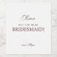 Procurando uma maneira única de propor a Bridesmaid? Nossas etiquetas personalizadas de garrafa de vinho, "Você será minha dama de Bridesmaid?", são o presente perfeito para propor às suas dançarinas de honra. O rótulo desta garrafa de vinho é certamente um toque especial e memorável para o seu presente. Olá! Bem-vindo ao nosso compro - Gift Fairy! Esperamos que você encontre a etiqueta de vinho personalizável certa para vestir sua garrafa de vinho, e você também pode querer adicionar uma bolsa de presente para apresentar seu presente! Por isso, por favor, olhem em volta e encontrem a etiqueta certa para a vossa celebração!