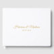 personalizar texto elegante clássico Letras douradas do Livro Convidado de Casamento, fundo branco