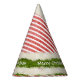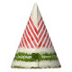 Personalize o "Feliz Natal" com suas próprias palavras usando o modelo do texto, deixe-o como é ou anule- para fora para removê-lo. Este chapéu da festa natalícia é peça do traje do duende com as listras vermelhas e brancas, fundo verde textured, doces de peppermint e guarnição distorcido digital. Um partido lunático do divertimento teve com o tema do duende do Natal.