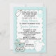 Este é um convite bonito do chá de fraldas que caracterize uma garrafa, um babador, uma camisa e uma carruagem de bebê.  Indica "garrafas, babadores e mais, deixou-nos regar abundante o bebê com os presentes.  Você pode personalizar o convite mudar o nome, a data e o lugar do chá.  Mude a pia batismal, o tamanho, a cor e o estilo para serir suas preferências.  A parte traseira foi deixada o vazio para toda a informações adicionais que você pudesse gostar de adicionar.