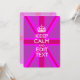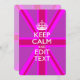 Seu personalizado "Fique Calmo" dizendo em uma vibrante decoração de união rosa-rosa. Um estilo "Manter Calmo" personalizado dizendo em um presente gentil. Humorístico ou caprichoso experimente suas palavras criativas em duas linhas editáveis de texto. Lembre-se de usar letras CAPITAL para obter melhores resultados. Use o link "Perguntar a este Designer" para entrar em contato conosco com suas solicitações especiais de design ou para obter assistência com suas necessidades de personalização.