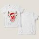 Create a one of a kind holiday keepsake with this festive personalized monogram. This design features the letter 'M' topped with a cute Santa hat and reindeer antlers, ready for your custom text. Click 'Personalize' to easily add a name and the year. Perfect for matching family shirts, custom stocking tags, or a special Christmas gift.
