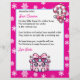 Add your child's name to this personalized letter from Santa. Cute pink and white Christmas gift and candy canes in a Kawaii style. The back has an adorable penguin sledding down a hill coloring page!