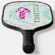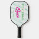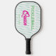 Serve in style with this fun and preppy "Pickleball Queen" paddle design! Featuring a classic background of thin green horizontal stripes on white, this design highlights "PICKLEBALL" in bold green block lettering paired with "Queen" in a vibrant, hot pink script. It includes a customizable text field to add your name (e.g., "Sarah's Paddle"), making it the perfect unique gift for the court ruler in your life. Whether for a birthday, tournament, or just because, this custom paddle combines sporty chic with a touch of feminine flair.