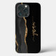 Personalize this elegant modern design with your name in vertical gold-colored signature handwriting script on a black background with a border of black watercolor agate trimmed with gold faux glitter. (To keep the swashes at the beginning and end of the name, replace only the letters, leaving the symbols in place.)