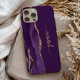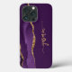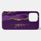 Personalize this elegant modern design with your name in vertical gold-colored signature handwriting script on a purple background with a border of purple watercolor agate trimmed with gold faux glitter. (To keep the swashes at the beginning and end of the name, replace only the letters, leaving the symbols in place.)