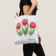 Elegant watercolor illustration of red tulips with soft green leaves, inspired by nature and floral beauty. A delicate personalized name adds a unique and meaningful touch, making this tote bag perfect for everyday use or as a thoughtful gift.
