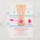 Um convite encantador para um dia de Spa para celebrar um aniversário especial ou uma despedida de solteira. O cartão apresenta pés usando esmalte vermelho com uma borda rendada e fundo floral. (FP)
