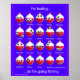 Vinte fotos de bobinas de pesca de olhos googeados rotuladas com emoções sobre fundo azul.