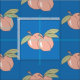 Um belo tecido azul com uma fruta de pêssego. Escolha o tipo de tecido adequado para o seu projeto. © ArianeC Ilustrações — Todos os direitos reservados