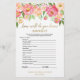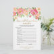 Este jogo cor-de-rosa "como você conhece a noiva" é perfeito para um chá de panela elegante. A frente do cartão de jogo apresenta "como você conhece bem a noiva", e a parte de trás do cartão contém "o que há na bolsa". O design floral apresenta um belo arranjo de peônias de aquarela em tons de blush e coral, combinado com uma caligrafia de folha de ouro afiada. Personalize a parte frontal da placa com o nome da noiva e a data do chá de panela. Nota: Este design não apresenta folha de ouro real. É um gráfico de alta qualidade feito para se parecer com folhas de ouro.