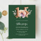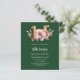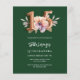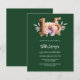 Um convite moderno, na moda e glamouroso para uma Quinceañera. Um fundo verde esmeralda, decorado com uma flor cor de rosa e pêssego. O nome é escrito com um moderno estilo escrito à mão verde. Personalize e adicione os detalhes da sua festa. O número 15 é escrito com uma fonte de estilo balão, script. 1 folha = 1 convite impresso de borda a borda.