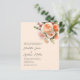 Para um casamento elegante e romântico. Um fundo cor de pêssego macio decorado com cor de laranja, pêssego e cor de rosa. Personalize e adicione seus nomes e detalhes. Verso: cor de pêssego. 1 folha = 1 convite impresso de borda a borda.