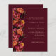 Para um casamento elegante e romântico. Um fundo burgundy decorado com florais cor de cor roxa, rosa e pêssego. Personalize e adicione seus nomes e detalhes. Detalhes de RSVP. 1 folha = 1 convite impresso de borda a borda.