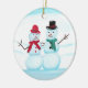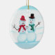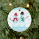 Adicione uma alegria de Natal feliz à árvore de Natal com este feliz casal de neve vestindo chapéus e lenços, e acenando para ele, impresso em ornamentos cerâmicos suspensos. Também pode ser personalizado com texto.