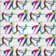As pessoas da dança abstraem cores com todas as formas e cores, vermelho, azul, amarelo, verde, roxo, violeta, rosa, preto e laranja