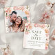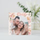 Floral elegante Salve o convite de data, convite de foto quadrada, com peões rosa pincelados em arco de boho.
