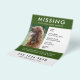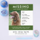 Um simples modelo de poster de panfleto para animais de estimação, para ajudar a espalhar a consciência na busca de um cão, gato ou outro animal de estimação desaparecido. O texto é fácil de personalizar, incluindo nome, idade, raça, data faltando, local visto pela última vez, recompensa ou outras informações. Há espaço para incluir um grande número de telefone e endereço de e-mail ou site e chamar para ação solicitando ajuda. O modelo inclui uma fotografia de solteiro que é fácil de carregar a partir do seu computador ou telefone. Precisa de ajuda para personalizar o modelo? Sinta-se à vontade para me contactar usando o botão de mensagem e terei todo o prazer em ajudá-lo.