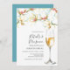 Elevem seu chá de panela com nosso convite "Petals and Prosecco", com elegantes flores brancas de magnólia e um copo de espumante. A tipografia de script manuscrito de na moda apresenta os detalhes do evento em uma serra de cinza de carvão clássico, se a letra for em um fundo branco nítido, enquanto o verso apresenta uma cor turquesa tropical complementar. Este convite botânico, porém elegante, é perfeito para comemorações de almoço ou brunch e chás de panela espumantes, especialmente em climas sulistas ou na Flórida. Explore a suíte inteira de Victoria Grigaliunas em www.zazzle.com/dotellabelle para designs mais impressionantes.