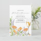 Celebre o chá de noiva com nossos convites de chá de noiva com flores silvestres requintados, apresentando flores em aquarela deslumbrantes e um copo de champanhe em tons de folhas botânicas laranja, lavanda e verde. A frase "Pétalas e Prosecco" é elegantemente escrita em caligrafia, tornando esses convites perfeitos para um tema de casamento boho chic com flores silvestres, um brunch floral botânico ou um encontro boêmio. Para opções ecológicas, um download digital também está disponível para casamentos sustentáveis.