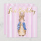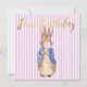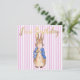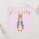 Peter, o Coelho soprando uma pastilha elástica rosa com um fundo de listras rosa. Um presente de chá de fraldas único!