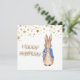 Peter, o coelho com estrelas douradas brilhantes Feliz Aniversário em texto decorativo