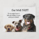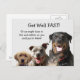 Este cartão-postal hilário diz, "Fique bem rápido! Ou talvez tenhamos que lamber e bater em você até que esteja melhor!" Este cartão-postal apresenta uma fotografia de querido do Spirit the Rottweiler, Sarge the Pitbull, Kelly the Ouro Retriever puppy, e Meece o gato de olhos azuis. Este é um cartão postal perfeito para cada amante de os animais.