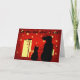 Uma ilustração gráfica de um gato e de um cão a olhar para presentes num cartão de Natal. A placa tem um verso e modelo personalizáveis para sua personalização.