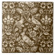 Grande azulejo cerâmico em William Morris, Art Nouveau, design de papel de parede de faisões e lebres entre folhas, vinha e flores - bege sobre fundo castanho de chocolate