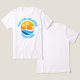 Texto Azul Phi Islands Tailândia. Design de praia tropical. Sunset, Palmeiras e Ondas Oceânicas.