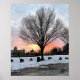 Filadélfia Snowy Sunset com Poster de Árvore à direita, vocês podem ver a linha do horizonte de Filadélfia ao fundo.