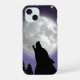 Phone case with a wolf howling at the full moon