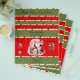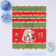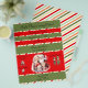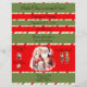 A camera holding Santa Clause, two elves, pepermint candy and balloons decorate the page on red and green stripes