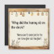 "Porque queria chegar a tempo para toda a diversão! Porque queria ser pontual para toda a diversão!" Esta piada pode ser mudada por você. Coelhos bonitos com pequenas bolsas e etiquetas de presentes pendurados na parte superior do quadro.