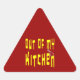 Fora da minha cozinha dizendo para cozinheiros com atitude, mães com Momitude e aqueles que se escravizam sobre um fogão quente por toda parte. Slogan de comida divertida em letras riscadas vermelhas no sangue com um decote de carne no 'N'