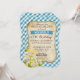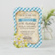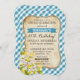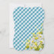 Cheque de gingham azul-piquenique com design de cartão de convite de aniversário de margarida.