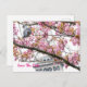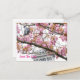 Um pombo empoleirado num galho florescente com vista para a torre Eiffel.