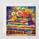Bonito antiga pilha de livros antigos cobertos por rosas e flores bonito, laranja, amarela e rosa. Linda arte ai.