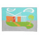 Este Meio século Moderno Cartoon House Pillowcase vai querer que você coloque o tapete WELCOME e se faça em casa! A design de arte minimalista da década de 1960 apresenta uma elegante pedra laranja e uma casa de vidro aqua numa relva luxuosa, verde, em forma de bumerangue. O gramado forma um oásis no meio de suas cinzas, arredores de concreto. Uma palmeira verde está balançando na brisa. Quatro, pedras laranja pisadas levam o caminho para a porta traseira, vermelha, frontal com três vidraças retangulares de vidro. À esquerda da porta, uma floreira de turquesa segura uma planta verde tropical. A casa tem um telhado branco inclinado em V que aponta em direção a duas nuvens brancas em forma de rim. O céu é uma forma serena de aqua. Ninguém vai querer jogar pedras desta design de casa de vidro moderna! Comprar este produto da era espacial e seja o gato mais legal do seu quarteirão!