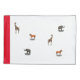 Design apresenta o divertido padrão de animais de jardim zoológico sorvidos na frente, Uma faixa vermelha leva o nome da criança. Reverso apresenta imagens do mesmo animal, mas maiores. Sem texto na faixa vermelha atrás.