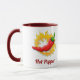 Pimenta vermelha com círculo de chama. Texto personalizado de ambos os lados.