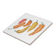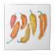 Este azulejo de cerâmica decorativo apresenta um padrão ilustrado de pimentões coloridos vermelhos, laranja e amarelos e também é um excelente porta-copos ou suporte para panelas. Disponível em dois tamanhos. Direitos autorais da obra de arte: Dominic White. Todos os direitos reservados.
